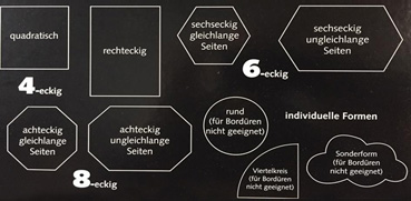 Egal welches Format Sie haben möchten. Wir fertigen Ihnen Ihren Wunschteppich genau nach Maß. Jeder abgepasste Teppich – außer rund oder in Sonderform – lässt sich auch mit einer Bordüreneinfassung verschönern.